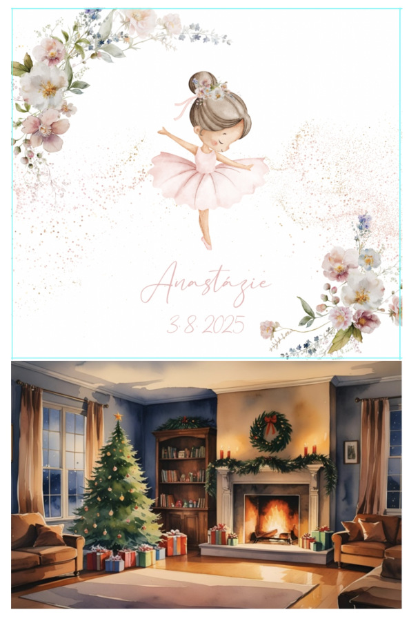Baletka - formát A4, desky bílé, 40 bílých listů, světle růžová stuha, grafika odsouhlasena (baletka s květinami), + kapsa na drobnosti 10x15 (upřesnit barvu). Cena 1189,-