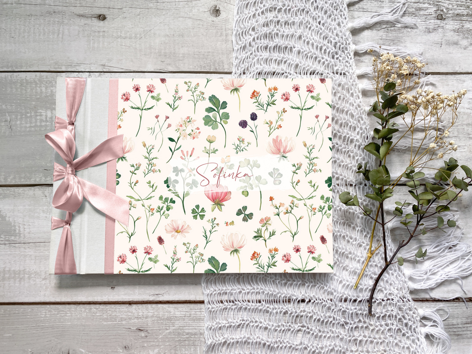 Album, jehož desky jsou potažené knihařským plátnem a tiskem přes většinu předních desek. (Zadní desky jsou jednobarevné, potažené vybraným knihařským plátnem.) Tisk je navíc chráněn matnou knižní laminací.