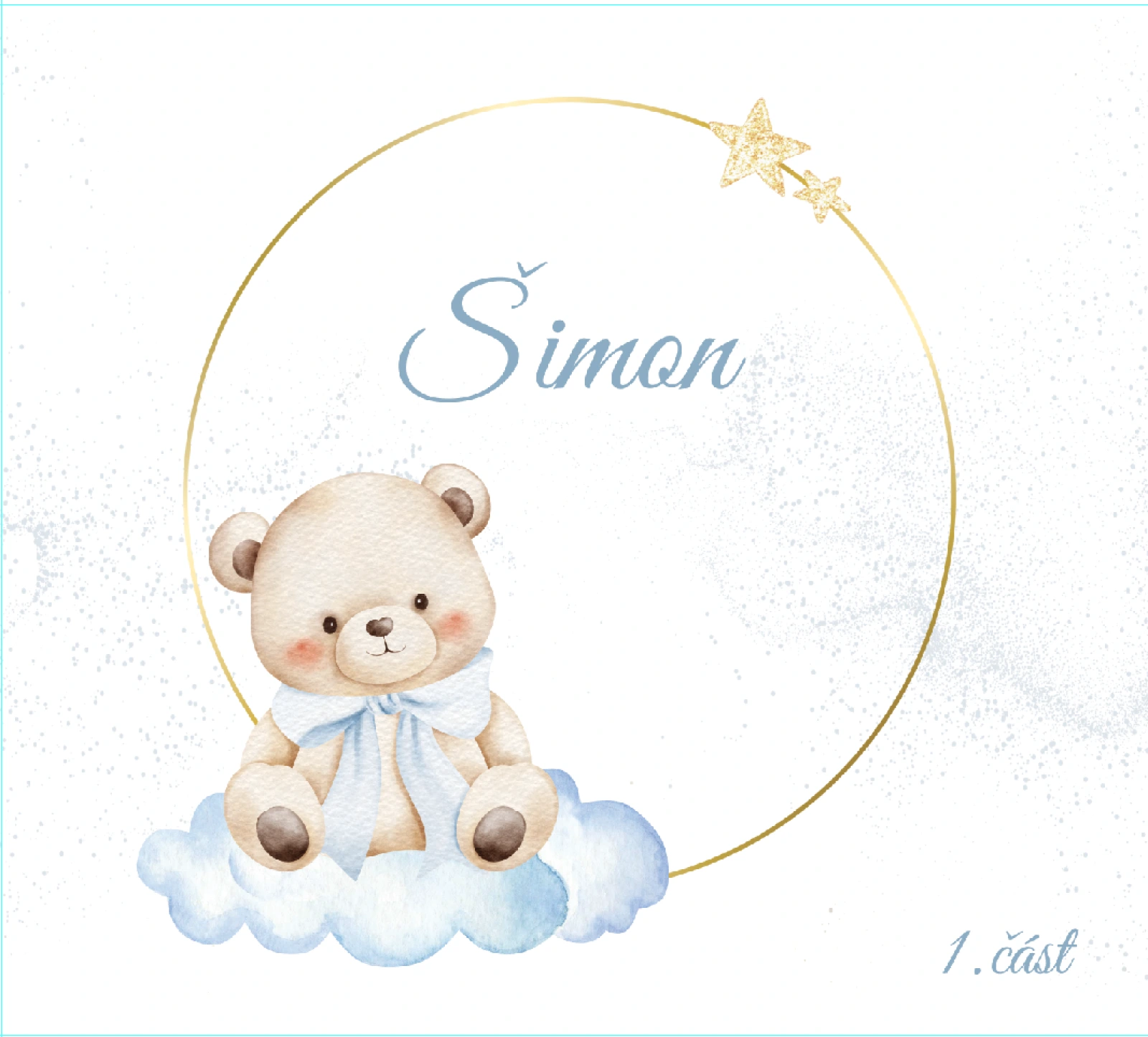 Album s grafikou s medvídkem vytvořené podle požadavků.